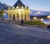 Кстати, о погружении. На Крестовой улице турист обязательно остановится у дома № 80. Построил его в 1895 г. купец Константин Расторгуев, городской голова, почётный гражданин Рыбинска, при котором появились водопровод, телефонная станция, электростанция, самая высокая в России пожарная каланча. Типичный купеческий особняк: кирпичный первый этаж, деревянный второй. После пожара 2002 г. дом восстановлен, теперь здесь один из лучших ресторанов — «Дом культуры и отдыха». Фирменный десерт «Расторгуев» заслуженно остаётся в памяти гостей. Вообще, рестораны в Рыбинске не растут как грибы, но предлагают оригинальную кухню: в меню всегда блюда из местной рыбы. Стерлядей не подают, но судак и щука в виртуозном исполнении не оставят гурманов равнодушными.