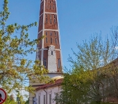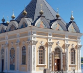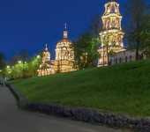 С середины XIX в. Рыбинск украшает великолепный ансамбль: могучий пятиглавый Спасо‑Преображенский собор и изящная 116‑метровая колокольня (одна из самых высоких в России). Огромный храм, построенный на пожертвования рыбинских купцов, вмещающий до 4 тыс. человек, долгое время был в запустении, но теперь его двери вновь открыты.